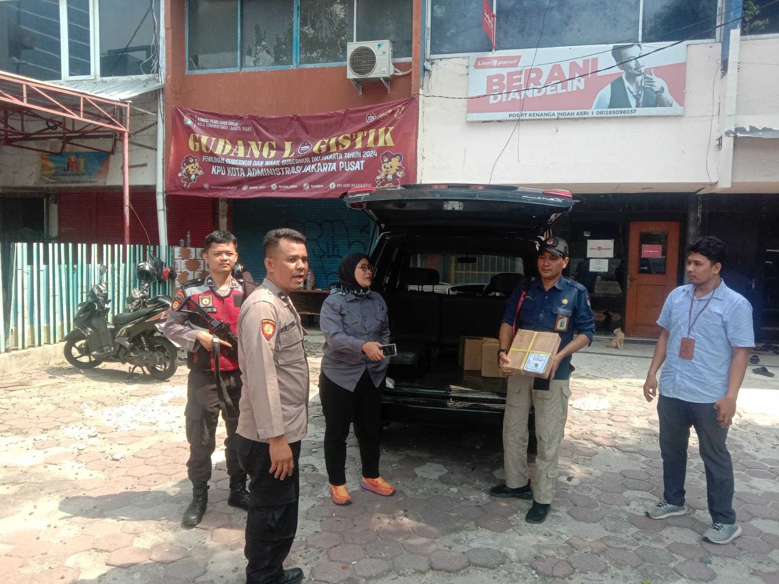Polri melalui Polsek Kemayoran dan melalui Operasi Mantap Praja 2024 Polda Metro Jaya melakukan pengamanan pendistribusian logistik Pilkada surat suara, Pengamanan dan pengawalan dilakukan di gudang logistik KPU Kota Jakarta Pusat.(Humas Polres Metro Jakarta Pusat).