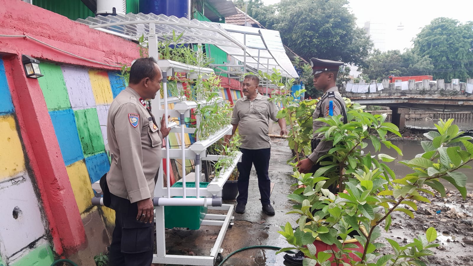 Bhabinkamtibmas Kelurahan Gambir, Aiptu Amirullah, yang turut mendampingi Siswa Latja Polri, Muhammad Fauzi Irawan, Siswa Diktukba Polri Gelombang II Tahun 2024, melakukan koordinasi dengan petugas Kampung Proklim, Bapak Bambang Pramudjati, terkait pelaksanaan program ketahanan pangan yang diinisiasi oleh pemerintah. Program ini bertujuan untuk meningkatkan ketersediaan dan keberlanjutan sumber pangan lokal bagi masyarakat setempat.