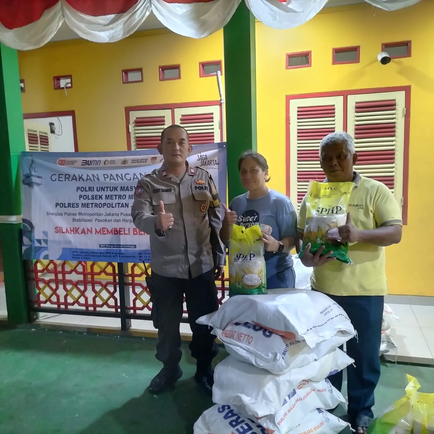 Kegiatan tersebut dipimpin langsung oleh Bhabinkamtibmas Kelurahan Menteng, Aiptu Robby Danan Jaya, bekerja sama dengan aparat RW setempat dan dukungan penuh dari Bulog, yang menyediakan beras program Stabilisasi Pasokan dan Harga Pangan (SPHP) dengan harga terjangkau, yakni Rp55.000 untuk kemasan 5 kilogram.