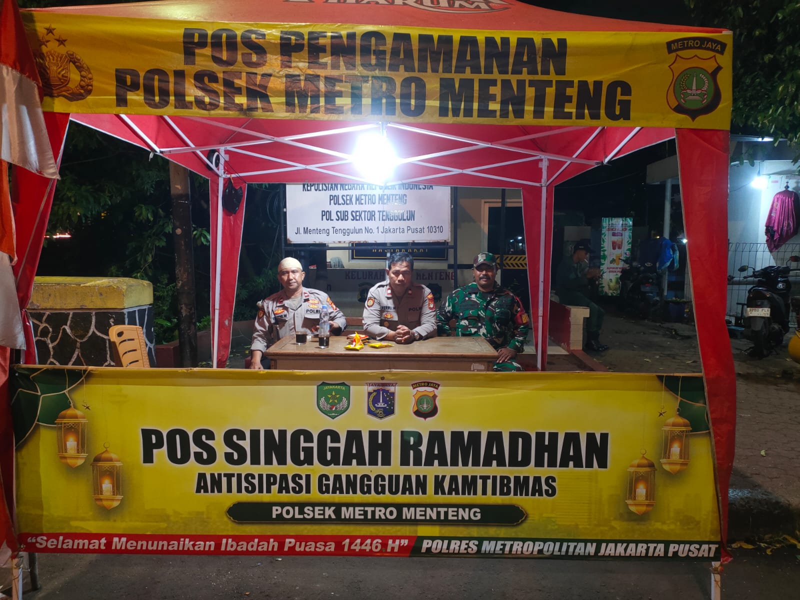 Pada bulan suci Ramadhan 1446 H, personel Polsek Metro Menteng, Aiptu Heru Wicaksono dan Aipda Victor Wahyudi, melaksanakan tugas pengamanan dan pemantauan guna mengantisipasi potensi gangguan keamanan dan ketertiban masyarakat (kamtibmas) di Pos Singgah Ramadhan, Menteng Tenggulun.